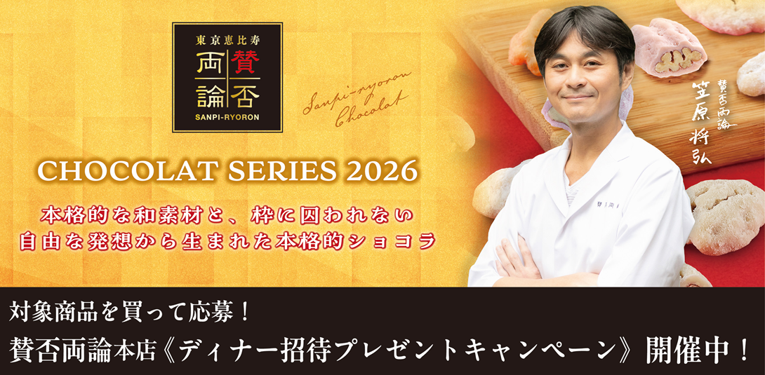 賛否両論ショコラシリーズ2,500円以上ご購入でペア3組を賛否両論恵比寿本店ディナーにご招待!