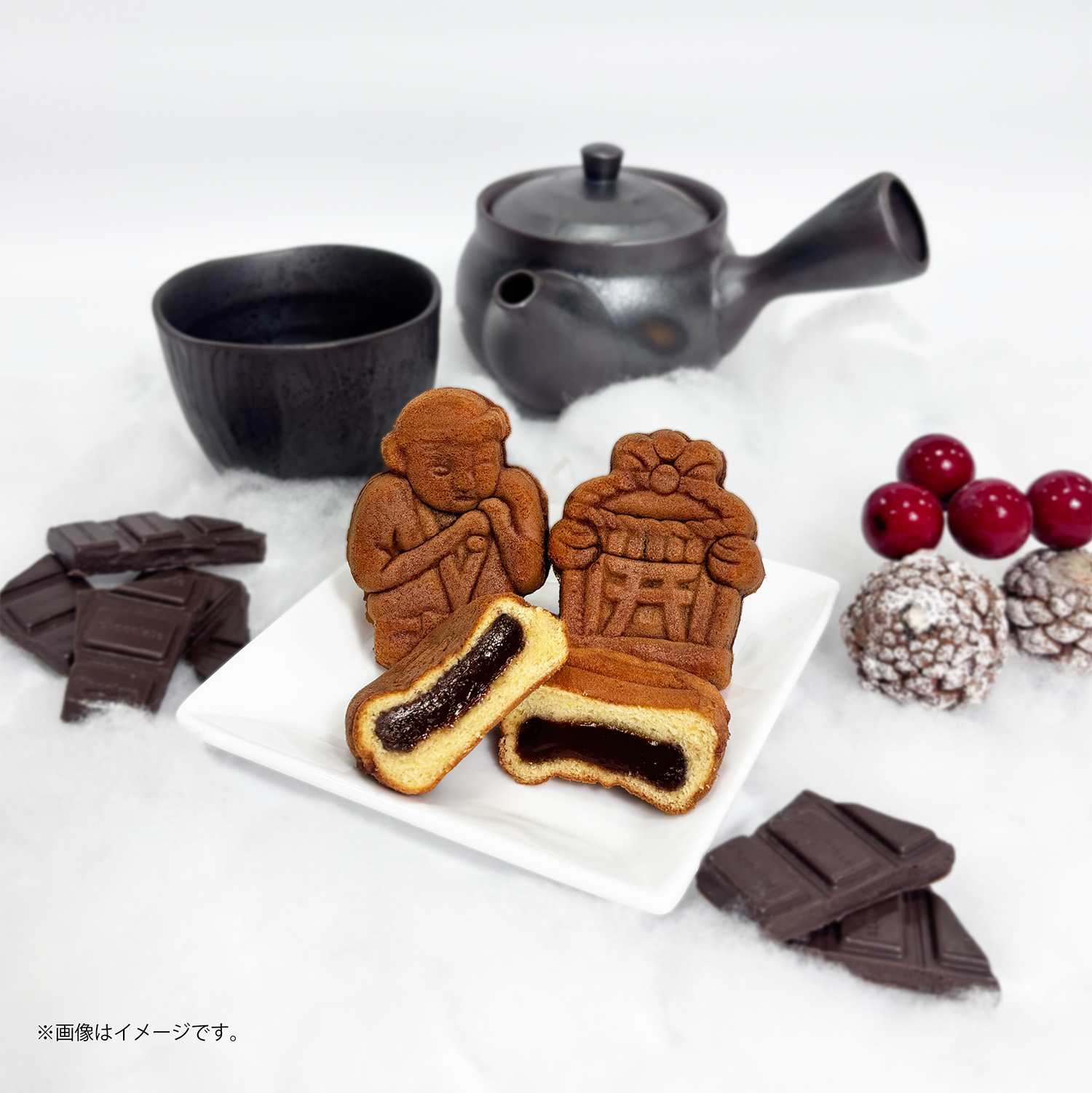 なめらかで、やさしい甘さのチョコクリームを包んだ冬季限定製造の江戸祭人形焼です。